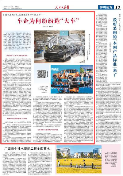 近年来推出的“大车”以新能源汽车居多。陈川分析,中国新能源汽车产业链条完善、技术成熟,新能源大型车能够有效降低出行成本,提升出行体验。中国本土品牌在电动化、智能化领域形成的技术领先优势,有效破解了大型车辆高使用成本的传统瓶颈,并以全新的驾乘体验和应用场景,提升了产品竞争力,实现了对传统燃油车的超越。